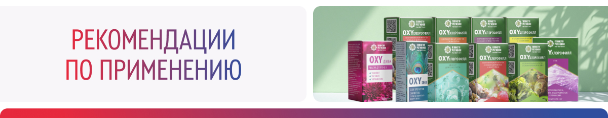 Предлагаем вам ознакомиться с рекомендациями по применению продуктов линии «OXYхлорофилл», чтобы применять их максимально эффективно, с учетом особенностей и потребностей вашего организма. Более подробная информация содержится в печатном издании Компании.