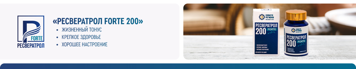 КОМПАНИЯ «ПЛАНЕТА РЕГИОНОВ» ПРЕДСТАВЛЯЕТ ИСТИННЫЙ «ЭЛИКСИР МОЛОДОСТИ» – «РЕСВЕРАТРОЛ FORTE» – ЛИНИЮ ПРОДУКТОВ ДЛЯ ПОДДЕРЖАНИЯ И УКРЕПЛЕНИЯ ЗДОРОВЬЯ С УНИКАЛЬНЫМ СОСТАВОМ: РЕСВЕРАТРОЛ (ИЗ ГОРЦА ЯПОНСКОГО) И ЭКСТРАКТ КРАСНОГО ВИНА, ДЕЙСТВИЕ КОТОРЫХ УСИЛИВАЮТ ДОПОЛНИТЕЛЬНЫЕ НАТУРАЛЬНЫЕ КОМПОНЕНТЫ.